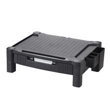 Stojan pod monitor QC - zásuvka a priehradky, čierny