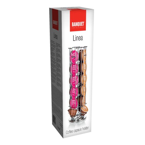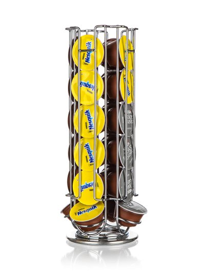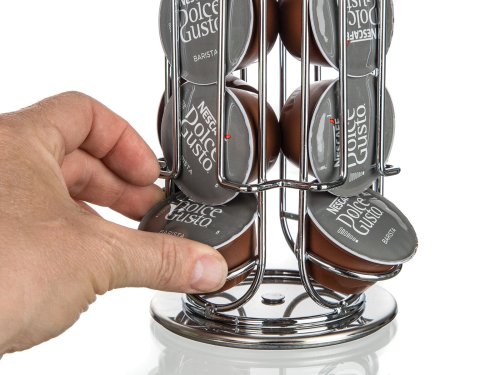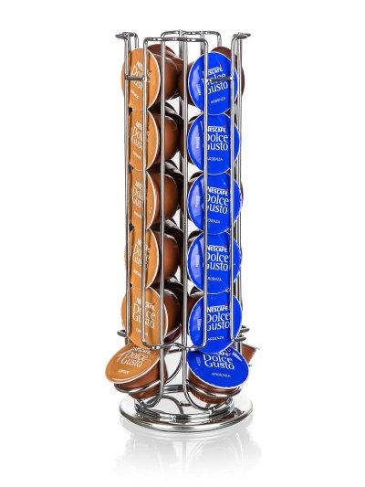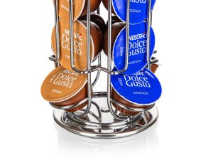Stojan na kávové kapsule LINEA Dolce Gusto, vyrobený z ocele, je šikovný pomocník na skladovanie kapsúl. Stojan je otočný a zmestí sa do neho až 24 ks Dolce Gusto kávových kapsúl. Kapsule sa dopĺňajú a odoberajú spodnou časťou stojanu.