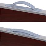 Cattara Balaton je kvalitný skladací stôl s rovnou a pevnou plochou so vzorom, ktorý vierohodne imituje tmavé drevo . Hliníkové skladacie nohy stola sú opatrené poistkou , takže nehrozí samovoľné zloženie. Plocha stola je zhotovená z pevnej umakartovej dosky , ktorá poskytuje odolný a rovný podklad na stolovanie.