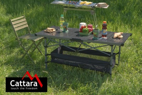 Vyrazte do kempu, k vode alebo využite pekné počasie a prespite s priateľmi pod stanom. Vezmite si so sebou skladací kempingový stôl Cattara Roll. Odložíte naň napríklad tácku s grilovaným mäsom alebo zeleninou av kľude sa najete. Konštrukcia a doska z lamiel umožňujú jednoduché zostavenie stola. Keďže má malé rozmery, po rozložení ho umiestnite do puzdra (súčasťou balenia). Zjednodušíte si tým jeho prenášanie.
