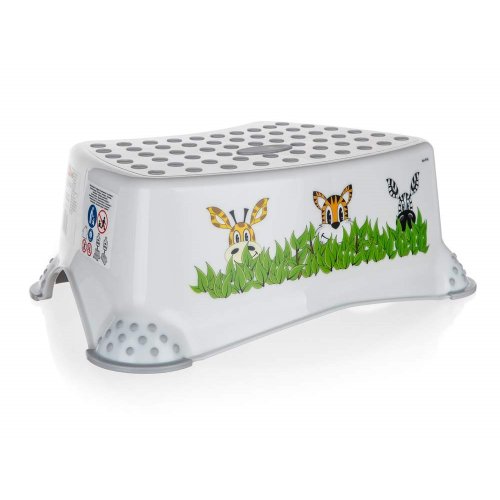 Stolička / schodík JUNGLE je možné použiť ako sedátko alebo ako stupienok pre deti. Vhodné využitie v kúpeľni či toalete, kedy deťom uľahčí prístup k ťažko dostupným miestam. Na spodnej aj vrchnej strane stoličky je protišmyková úprava, takže je stolička bezpečnejšia.