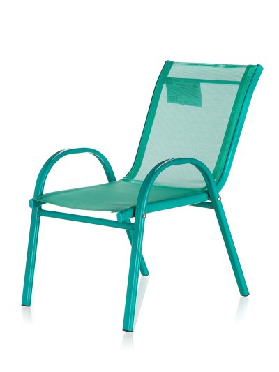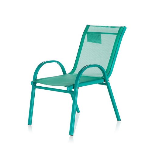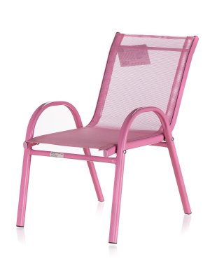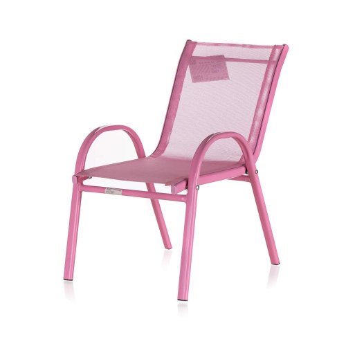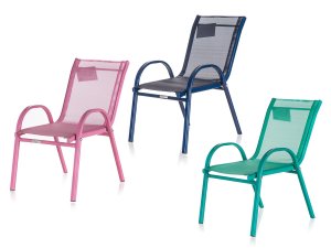 Detská záhradná stolička stohovateľná je vyrobená z ocele a textilenu. Rozmer 51 x 36 x 57/26 cm. Stoličky jou stohovateľné, pri skladovaní zaberú minimum miesta. Stolička je dodávaná farbách: modrá, zelená a ružová. Nosnosť stoličky je 35 kg.