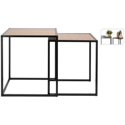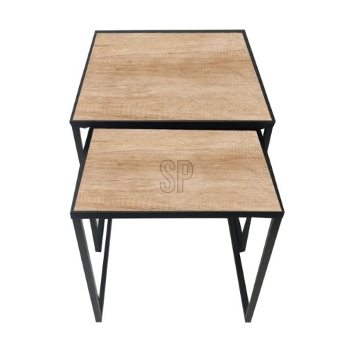 bočný stolík kovový s mdf doskou a melamínom, sada 2 kusov, farba: prírodná, veľkosť malá: 300x300x340mm, veľká: 340x340x370mm, rúrka 13mm
