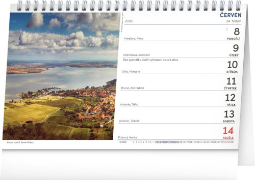 Romantické i málo známe zákutia Čiech a Moravy na stránkach praktického stolného kalendára, ktorý môže poslúžiť aj ako zdroj inšpirácie pre vaše výlety. Kalendár obsahuje české kalendárium s českými menami, sviatkami, významnými dňami a prehľad na rok 2026 a 2027.