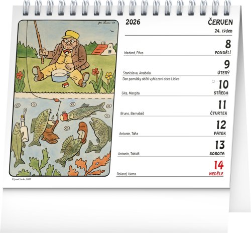 Týždenný stolný kalendár s ľudovými ilustráciami Jozefa Lady je praktickým pomocníkom na každý deň. Kalendár obsahuje jeden obrázok na každý týždeň, kalendárium s českými menami, sviatkami a pamätnými dňami, fázami mesiaca a prehľad na celý rok.