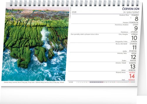 Pokochajte sa fotografiami pokojnej i rozbúrenej vodnej hladiny, besniacimi vodopádmi či ľadovcovými jazerami. Dvojjazyčný kalendár Voda zachytáva najrozmanitejšie podoby vody po celom svete. Obsahuje česko-slovenské kalendárium, sviatky a pamätné dni, mesačné fázy a zoznam českých a slovenských mien.