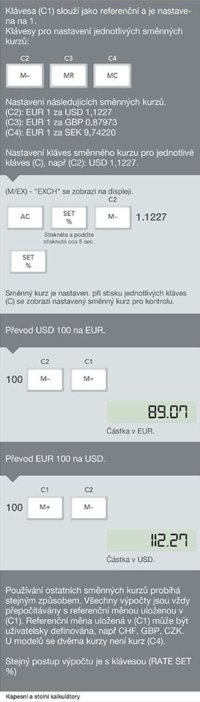 • Funkcia pre prevod mien - nastavenie až 3 samostatných kurzov mien