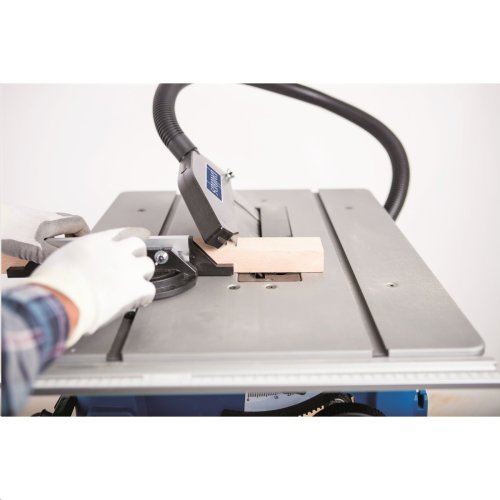Ochrana pílového kotúča s integrovaným nástavcom na odsávanie pilín zaistí maximálnu bezpečnosť pri obsluhe stroja a zaručí aj to, že na pracovnej doske nezostane ani smietko. Stolová píla sa chváli kvalitným TCT kotúčom s priemerom 250 mm , ktorý má 24 tvrdených zubov. Pre veľmi jemné rezy sa k píle dodáva aj druhý kotúč so 48 striedavými zubami , ktorý sa skvele hodí pre drevotrieskové dosky. Ďalej tu sú výborné hodnoty maximálneho prerezu až 85 mm.