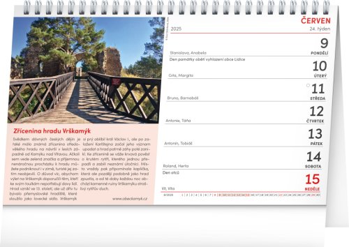 Plánujete rodinné výlety s deťmi? V našom kalendári nájdete 53 výletov na české hrady a zámky, z ktorých budú nadšené aj vaše deti. Praktický kalendár bude pomocníkom všetkých aktívnych rodín a krásnym darčekom nielen pre rodiny s malými cestovateľmi. České týždenné kalendárium s priestorom pre vaše poznámky obsahuje mená, sviatky a ďalšie významné dni.