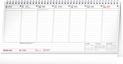 Stolový kalendár so stĺpcovým kalendáriom obsahuje všetky termíny daňových povinností, české mená, sviatky a pamätné dni a trojmesačný prehľad u každého týždňa. Prehľadne si naplánujete svoj čas, pri každom dne je dostatok priestoru na poznámky.