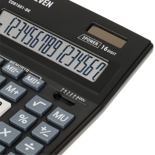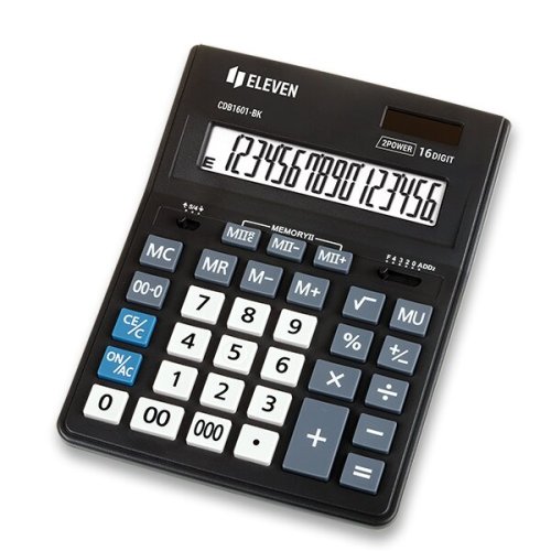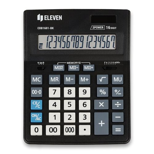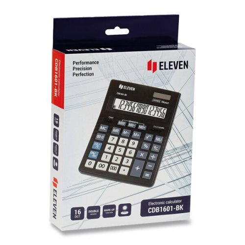 • 16miestny displej, • 4 pamäťové klávesy: MC, MR, M+, M-, • funkcia pre operácie s prirážkami, zľavami [MU], • nastavenie zaokrúhlenia výpočtu, • výpočty s odmocninou [√], • dva registre pamäte [MII], • zmena znamienka pred číslom [+/-], • vymazanie desatinnej čiarke, • percentá [%], • rýchle zadanie dvojitej nuly [00], • rýchle zadanie trojitej nuly [000], • 204 x 155 x 32,6 mm, • 208 g