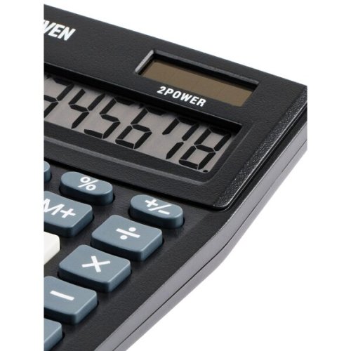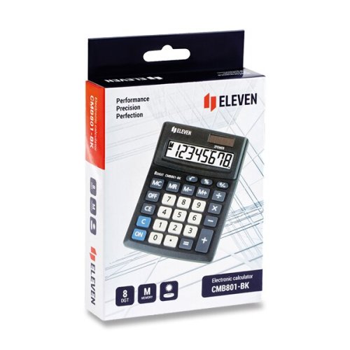 • 8-miestny displej, • 4 pamäťové klávesy: MC, MR, M+, M-, • výpočty s odmocninou [√], • zmena znamienka pred číslom [+/-], • percentá [%], • 138 x 103 x 28,5 mm, • 93 g