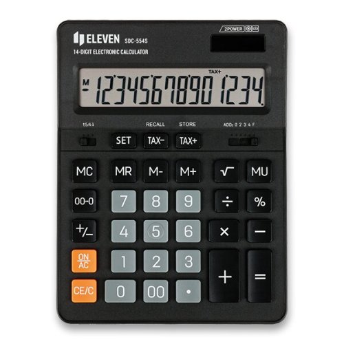 • 14miestny displej, • 4 pamäťové klávesy: MC, MR, M+, M-, • funkcia pre operácie s prirážkami, zľavami [MU], • výpočty s odmocninou [√], • zmena znamienka pred číslom [+/-], • vymazanie posledného zadaného čísla na displeji [CE], • nastavenie množstva desatinných miest nuly [00], • výpočty s DPH/VAT/TAX [TAX], • 205 x 155 x 36 mm, • 225 g