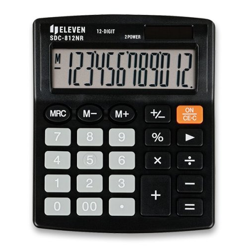 • 12miestny displej, • 3 pamäťové klávesy: MRC, M+, M-, • zmena znamienka pred číslom [+/-], • vymazanie posledného zadaného čísla na displeji [CE], • percentá [%], • rýchle zadanie dvojitej nuly [00], • 127 x 105 x 21 mm, • 9