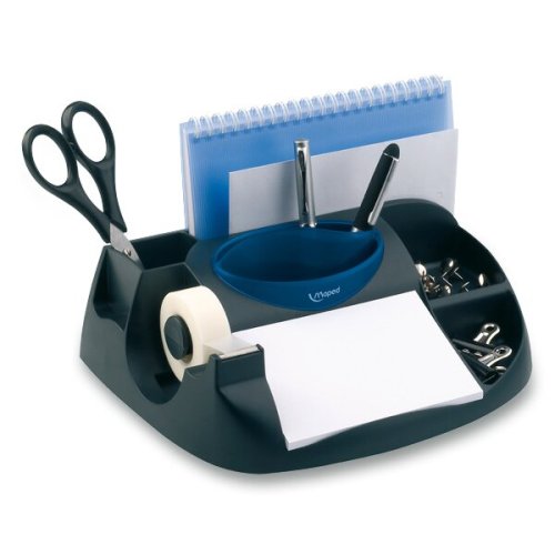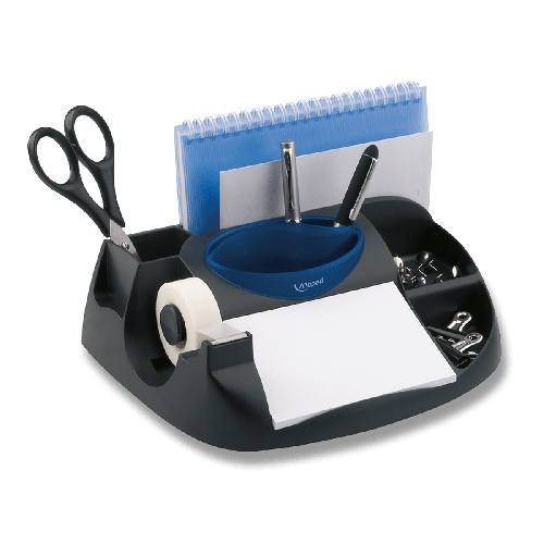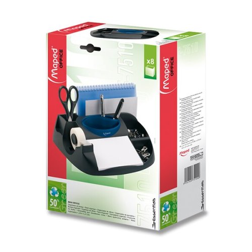 Stolný organizér so zásobníkom na lepiacu pásku (19 mm x 33 m), s držiakom na listy a ďalšími priehradkami na kancelárske potreby. Dodávané bez obsahu,Vyrobené zo 78% z recyklovaného plastu.