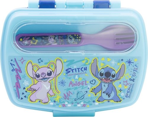 Praktický box na desiatu s vidličkou a lyžičkou s motívom Angela a Stitcha. Vlastnosti: