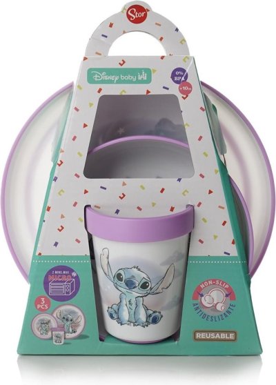 sada obsahuje tanierik, misku a kelímok, bez obsahu BPA, tanier a miska sú vhodné do mikrovlnky (maximálne na 600W na 2 minúty) aj umývačky vhodný, kelímok je vhodný iba do mikrovlnky (maximálne na 600W na 2 minúty) .