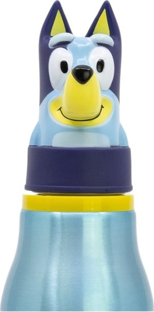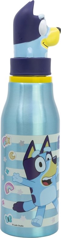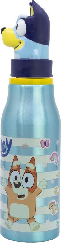 Detská hliníková fľaša na vodu, 690 ml, s figúrkou na viečku Bluey. Odolná hliníková fľaša so skrutkovacím viečkom, zdobená 3D figúrkou obľúbenej postavičky z detských seriálov. Deti ju budú chcieť mať stále pri sebe.