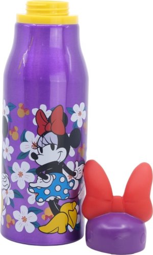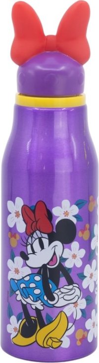 Detská hliníková fľaša na vodu, 690 ml, s figúrkou na viečku Minnie. Odolná hliníková fľaša so skrutkovacím viečkom, zdobená 3D figúrkou obľúbenej postavičky z detských seriálov. Deti ju budú chcieť mať stále pri sebe.