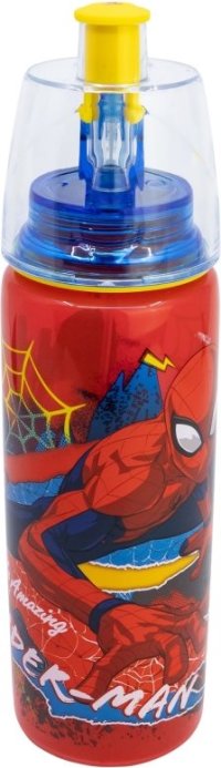 Detská plastová fľaša na vodu s náustkom a rozprašovacím tlačidlom. Vlastnosti: