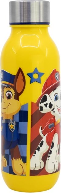 Opakovane použiteľná, odolná plastová fľaša s oceľovým skrutkovacím viečkom.
