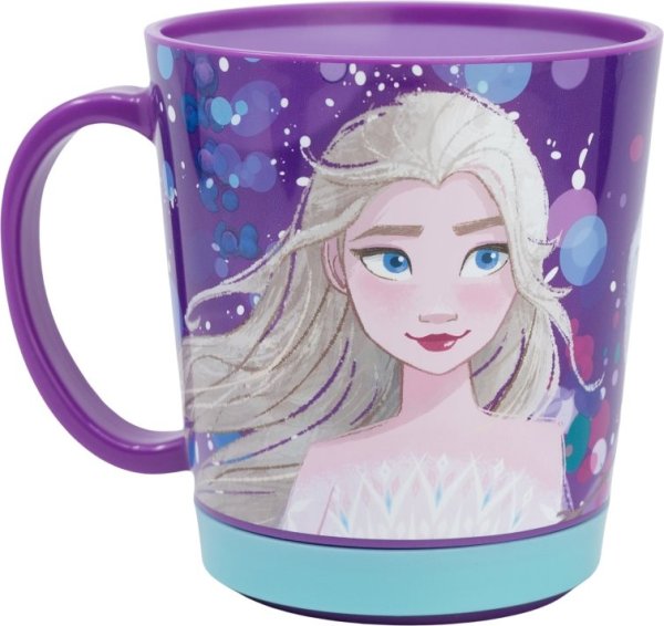 Plastový hrnček s protišmykovou a protihlukovou úpravou s motívom Ľadového kráľovstva.