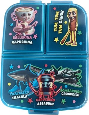 Originálny a praktický box na desiatu s viacerými priehradkami, ktorý si deti môžu so sebou vziať do školy, na ihrisko alebo napríklad na výlet. Multi box je vyrobený z odolného materiálu, vydrží náhodné pády a nárazy pri každodennom používaní. Tri oddelené priehradky sú ideálnym riešením pre desiatu s viacerými chodmi, ktoré chcete uchovávať zvlášť. V jednej komore môžete skladovať zdravú zeleninu či ovocie, do druhej pripravíte chutný sendvič a do tretej schováte deťom niečo dobré na zub. Box je zdobený atraktívnymi motívmi, deti si ho tak zamilujú a rady si ho budú brať všade so sebou. Multi box je vhodný nielen na ukladanie jedla, poslúži aj na úschovu drobných hračiek a malých detských pokladov. Výhody: