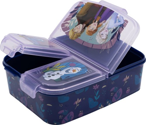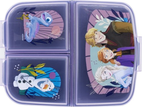 Originálny a praktický box na desiatu s viacerými priehradkami, ktorý si deti môžu so sebou vziať do školy, na ihrisko alebo napríklad na výlet. Multi box je vyrobený z odolného materiálu, vydrží náhodné pády a nárazy pri každodennom používaní. Tri oddelené priehradky sú ideálnym riešením pre desiatu s viacerými chodmi, ktoré chcete uchovávať zvlášť. V jednej komore môžete skladovať zdravú zeleninu či ovocie, do druhej pripravíte chutný sendvič a do tretej schováte deťom niečo dobré na zub. Box je zdobený atraktívnymi motívmi, deti si ho tak zamilujú a rady si ho budú brať všade so sebou. Multi box je vhodný nielen na ukladanie jedla, poslúži aj na úschovu drobných hračiek a malých detských pokladov. Výhody: