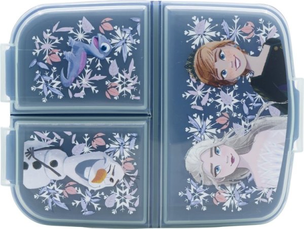 1 veľká priehradka a 2 malé. Odolný materiál. Dekorácia na veku. Neobsahuje BPA. Oficiálna licencia.