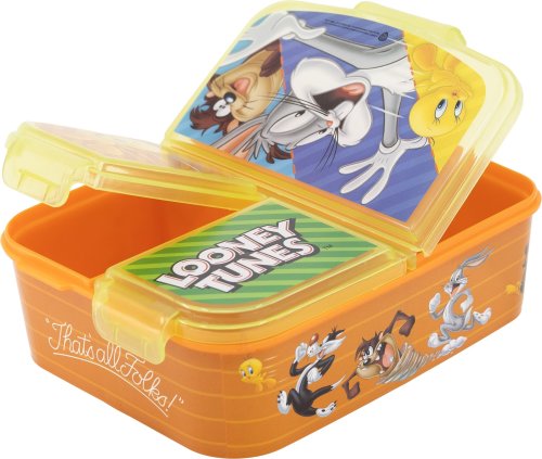 Originálny a praktický box na desiatu s viacerými priehradkami, ktorý si deti môžu so sebou vziať do školy, na ihrisko alebo napríklad na výlet. Multi box je vyrobený z odolného materiálu, vydrží náhodné pády a nárazy pri každodennom používaní. Tri oddelené priehradky sú ideálnym riešením pre desiatu s viacerými chodmi, ktoré chcete uchovávať zvlášť. V jednej komore môžete skladovať zdravú zeleninu či ovocie, do druhej pripravíte chutný sendvič a do tretej schováte deťom niečo dobré na zub. Box je zdobený atraktívnymi motívmi, deti si ho tak zamilujú a rady si ho budú brať všade so sebou. Multi box je vhodný nielen na ukladanie jedla, poslúži aj na úschovu drobných hračiek a malých detských pokladov. Výhody: