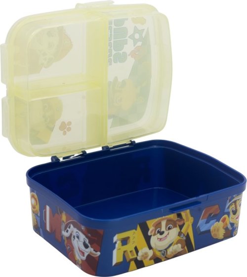 1 veľká priehradka a 2 malé. Odolný materiál. Dekorácia na veku. Neobsahuje BPA. Oficiálna licencia.