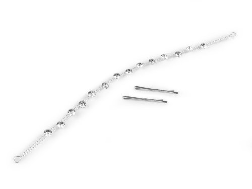 Štrasová ozdoba do vlasov je veľmi elegantná, v účese neprehliadnuteľná. Vďaka ozdobám zo sklenených brúsených kamienkov sa na diaľku efektne trblietajú. Ozdoba je ohybná, dá sa skvele tvarovať podľa potreby. Nasadí sa na vlasy pomocou vlasových sponiek, stuhy alebo gumy, ktorú upevníte do očiek (Ø 5 mm) na koncoch. Je vhodná do zložitých účesov ako sú rôzne drdoly alebo prekladané účesy, kde sa konce korunky schovajú pod vlasmi. Využijete ju ako doplnok na svadbu, do divadla, na večierky alebo na ples. Súčasťou balenia sú 2 sponky pinetky. Ozdoby č. 2 a 3 sú zložené z 2 radov, ktoré sa dajú odtiahnuť alebo naopak pritiahnuť k sebe podľa potreby.