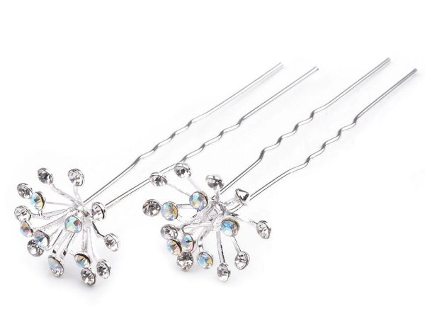 Elegantné vlásenky Ø20mm, ktoré každý účes povýšia najmenej o dve triedy vyššie. Dĺžka vlásenky 65mm je bez ozdoby, ozdoba má výšku 10mm. Kamienky sú sklenené, brúsené, takže sa na slnku aj umelom svetle budú jemne blýskať, čo výsledný dojem ešte umocní. Ozdobia spoločenské účesy aj nevesty v ich deň...