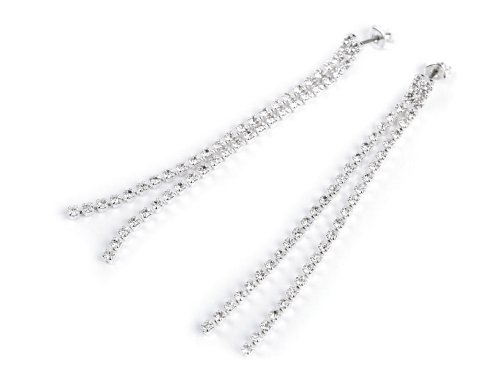 Luxusné štrasové náušnice z celosvetovo preslávenej jabloneckej bižutérie. Sú tvorené 2 radmi dlhých strapcov. Opticky pretiahnu a zoštíhlia líniu šije. Sú vyrobené z tzv. krištáľového skla, ktoré sa vyznačuje vysokým leskom, predovšetkým pri dopade svetla. Sklenené kamienky sú zasadené do kovového lôžka a pri každom pohybe hlavy sa trblietajú. Náušnice sú puzetového typu, zo zadnej strany majú kovové zarážky proti vypadnutiu.