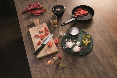 Praktický univerzálny nôž strednej veľkosti je vhodný na krájanie všetkých potravín. Čepeľ noža je zo silnej nerezovej oceľovej planžety. Ostrie je zhotovené revolučnou technológiou LZR-EDGE. Tá umožňuje, aby nôž zostal ostrý 4-krát dlhšie ako štandardné nože. Držadlo noža je ergonomicky tvarované s jedinečným 3D vzorom, ktorý zaisťuje perfektné držanie. Výška: 420 mm, dĺžka: 25 mm, šírka: 90 mm, hmotnosť: 100 g.