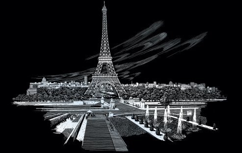 Škrabacie obrázky zo série "Významné miesta" prebúdza kreativitu a nadšenie. Výtvarníkov zamestnajú na dlhé hodiny. Papier je potiahnutý čiernou vrstvou skrývajúcou podklad so strieborným efektom, ktorý z kresby urobí nevšedný pohľad.