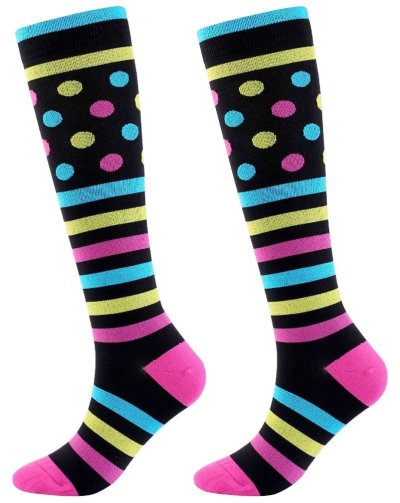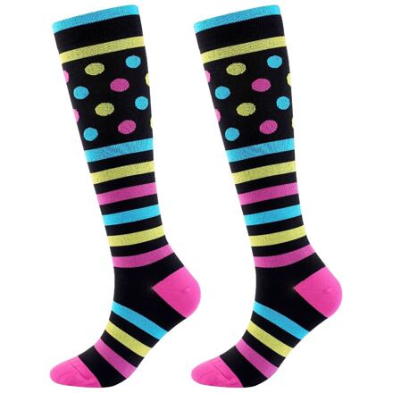 Merco Striped Dots sú kompresné podkolienky pre ženy. Pozitívne pôsobí na krvný obeh vďaka stupňovitému masážnemu tlaku, slúži na urýchlenie regenerácie po tréningu, dobre absorbujú vlhkosť a sú zároveň skvele priedušné. Kompresné podkolienky sú ideálne nielen na šport ako beh, cyklistika, turistika, ale aj na dlhé cestovanie či pre administratívne pracovníčky, ktoré majú problémy s prekrvením nôh. - materiál: nylon - funkčný základ oblečenia - na behanie, cyklistiku, turistiku, dlhé cesty, bežné použitie - kompresné podkolienky možno prať na 30 stupňov, nepoužívajte aviváž a bielidlá, nežehlite Veľkosti (uvedené hodnoty sú iba orientačné as ohľadom na konkrétny tvar nohy sa môže vhodná veľkosť líšiť) M: EU 35 - 38 L: EU 39 - 41