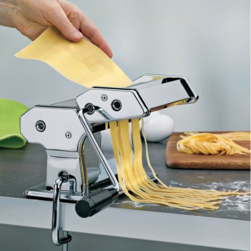 Vyrobte si originálne domáce cestoviny priamo vo vašej kuchyni. Strojček na cestoviny Antonietta je vyrobený z nerezovej ocele. Valčeky sú z chrómovej ocele s vysoko kvalitnou povrchovou úpravou. Strojček má protišmykový podstavec a vďaka nastaviteľnému zveráku ho stabilne pripevníte ku kuchynskej linke alebo stolu. Veľmi jednoduchá manipulácia a použitie. Z pohodlia domova tak jednoducho zvládnete pripraviť lasagne, fettucine alebo špagety. - materiál: nerezová oceľ / chrómovaná oceľ - šírka cesta až 14,5 cm - 9 rôznych nastavení: 0,3 - 3 mm - 3 varianty: lasagne, fettuccine, špagety - značka: KELA
