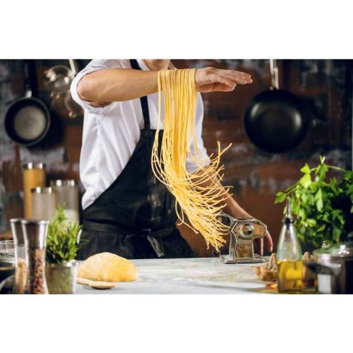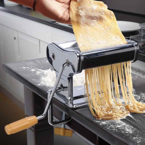Vyrobte si originálne domáce cestoviny priamo vo vašej kuchyni. Strojček na cestoviny je vyrobený z nerezovej ocele. Valčeky sú z chrómovej ocele s vysoko kvalitnou povrchovou úpravou. Strojček má protišmykový podstavec a vďaka nastaviteľnému zveráku ho stabilne pripevníte ku kuchynskej linke alebo stolu. Veľmi jednoduchá manipulácia a použitie. Z pohodlia domova tak jednoducho zvládnete pripraviť lasagne, fettucine alebo špagety. - materiál: nerezová oceľ / chrómovaná oceľ- šírka cesta až 14,5 cm- 9 rôznych nastavení: až 3 mm- 3 varianty: lasagne, fettuccine, špagety- značka: EXCELLENT