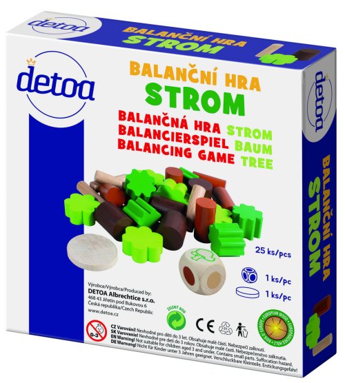 Balančná hra Strom, slúži na rozvoj jemnej motoriky rúk. Farba na kocke určuje farbu dielika, ktorý musí hráč umiestniť na hraciu plochu. Hra pokračuje, pokiaľ strom nebude plne postavený alebo sa rozpadne jednému z hráčov pod rukami.