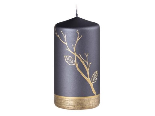 Strom s listami, Valec 75x140mm metal mat čierno-zlatá sviečka