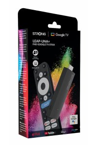 Streamovací stick LEAP-UNA+ s certifikovaným systémom Google TV a operačným systémom Android 14 prináša prístup k hlavným streamovacím platformám vrátane Netflix, Prime Video, Disney+ a YouTube. Vďaka AI upscalingu (Super Resolution) a podpore HDR10+ a HLG zaisťuje ostrejší obraz so živými farbami až do rozlíšenia 1920 × 1080 px pri 60 fps .