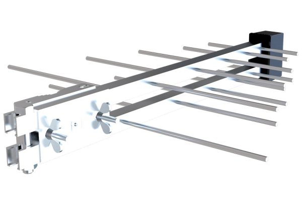 STRONG SRT ANT 100; Vonkajšia anténa pre príjem DVB-T/T2 signálu s externým 5G/4G LTE filtrom je vybavená integrovaným zosilňovačom so ziskom 16 až 18 dB.