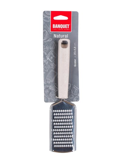 Strúhadlo NATURAL je vyrobené z nehrdzavejúcej ocele a je určené pre profesionálne aj domáce použitie Strúhadlo je opatrené praktickým očkom pre možnosť zavesenia, ľahko sa udržuje, možno umývať v umývačke riadu NATURAL spĺňa náročné požiadavky profesionálov a je vhodná aj pre domáce použitie. Jednoduchý funkčný dizajn zabezpečuje nadčasovosť a dlhú morálnu i kvalitatívnu životnosť všetkých. výrobkov. Držadlo je z polypropylénu a pšeničných otrúb.