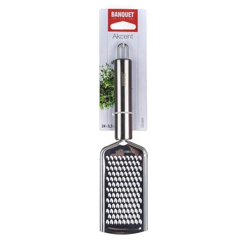 Strúhadlo AKCENT je vyrobené z nerezovej ocele a je určené pre profesionálne aj domáce použitie. Strúhadlo je opatrené praktickým očkom pre možnosť zavesenia, ľahko sa udržuje a je možné umývať v umývačke riadu. Rad kuchynského náčinia AKCENT spĺňa náročné požiadavky profesionálov a je vhodný aj na domáce použitie. Jednoduchý funkčný dizajn zabezpečuje nadčasovosť a dlhú morálnu i kvalitatívnu životnosť všetkých výrobkov.