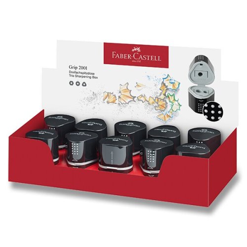 trojité strúhadlo vhodné pre štandardné trojhranné ceruzky i pastelky a silné typu Jumbo, * uzatvárateľné, * veľká nádobka na odrezky na oboch stranách