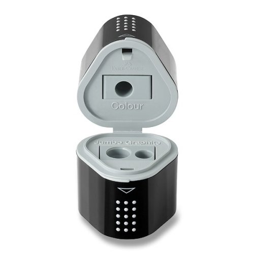 • trojité strúhadlo vhodné pre štandardné trojhranné ceruzky i pastelky a silné typu Jumbo, * uzatvárateľné, * veľká nádobka na odrezky na oboch stranách
