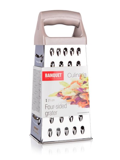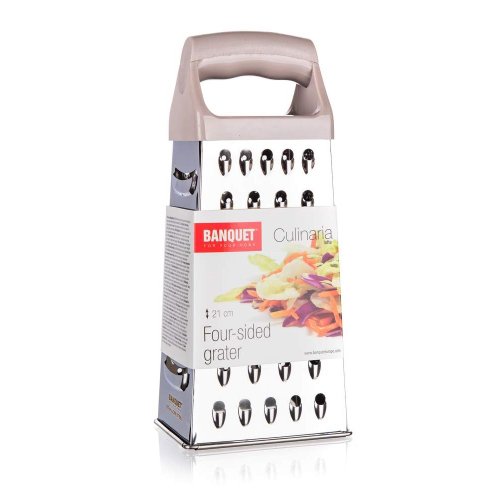 Nerezové strúhadlo 4stranné CULINARIA Latte v štandardnom prevedení v tvare A. Strúhadlo je stabilné pri práci a ľahko sa čistí.