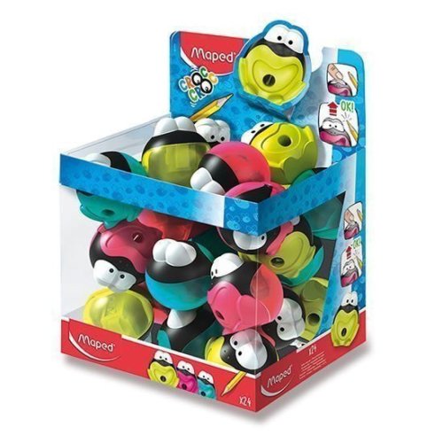 Plastové strúhadlo Maped Croc Croc signal s patentovaným indikátorom ostrosti tuhy. Keď je ceruzka dostatočne orezaná, na vrchu strúhadla sa objavia oči. Vrátane zásobníka na odpad. Mix farieb.