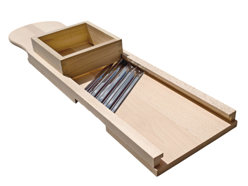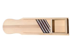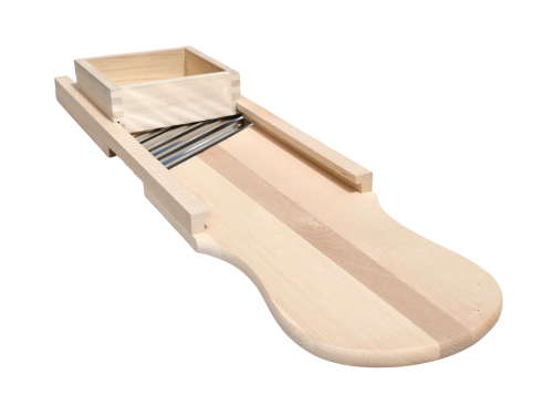 Tradičné drevené strúhadlo je ideálnym pomocníkom na domáce spracovanie zeleniny. Vyznačuje sa robustnou konštrukciou z masívneho dreva a ostrými nerezovými nožmi, ktoré zaisťujú rýchle, presné a rovnomerné krúženie. Výrobok je dostupný v rôznych veľkostiach a je vhodný ako pre domácnosti, tak aj pre menšie výrobné prevádzky.